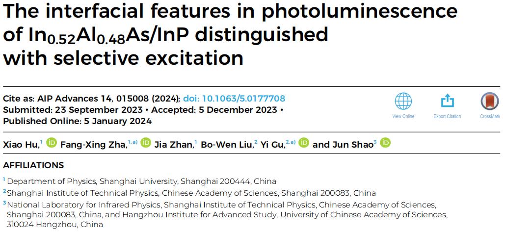 分享一篇來自上海大學(xué)查訪星教授團(tuán)隊的新研究成果,本文以“The interfacial features in photoluminescence of In0.52Al0.48As/InP distinguished with selective excitation”為題發(fā)表于期刊AIP Advances,原文鏈接:doi.org/10.1063/5.0177708。希望對您的科學(xué)研究或工業(yè)生產(chǎn)帶來一些靈感和啟發(fā)。