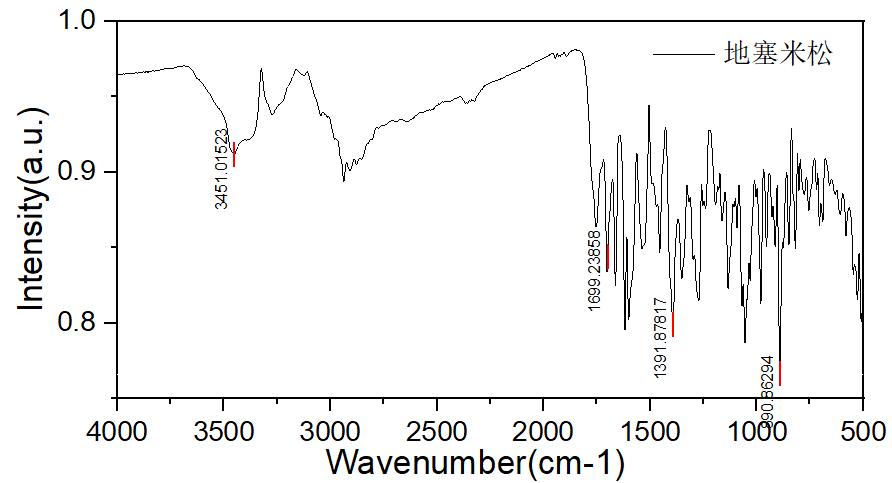 如上所示為實(shí)驗(yàn)室測(cè)得四種抗生素的紅外光譜圖,分別與標(biāo)準(zhǔn)光譜圖保持一致[2]。其中,阿莫西林有明顯的取代苯類骨架振動(dòng)峰(1567cm-1、1441cm-1)。另外,阿莫西林和頭孢同屬于β-內(nèi)酰胺類抗生素,它們的化學(xué)結(jié)構(gòu)中都含有內(nèi)酰胺環(huán),都存在β-內(nèi)酰胺環(huán)羰基的伸縮振動(dòng)峰(1750~1800cm-1),以及明顯的C-H伸縮振動(dòng)(3000~2843cm-1,2972~2843cm-1)。對(duì)乙酰苯酚有酮類C=O鍵的伸縮振動(dòng)峰(如1639cm-1),還有明顯的苯環(huán)的骨架振動(dòng)(如1600cm-1、1500cm-1)以及O-H鍵面外彎曲振動(dòng)(677cm-1)。地塞米松除了羧酸的OH伸縮振動(dòng)(3300-2500cm-1)、C=O伸縮振動(dòng)(如1615cm-1)、OH面外彎曲振動(dòng)(900cm-1),還有酮類C=O伸縮振動(dòng)(1615cm-1)等。