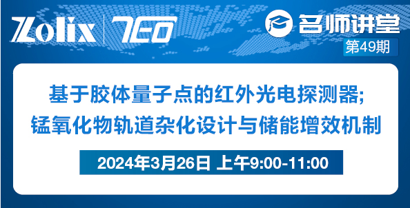 3月26日上午9:00—11:00,上??萍即髮W(xué)副研究員—周文佳、北京化工大學(xué)助理研究員—楊志宇將分別為大家?guī)碇v座《基于膠體量子點(diǎn)的紅外光電探測(cè)器》和《錳氧化物軌道雜化設(shè)計(jì)與儲(chǔ)能增效機(jī)制》。直播期間更有豐富好禮相送,歡迎屆時(shí)參加!