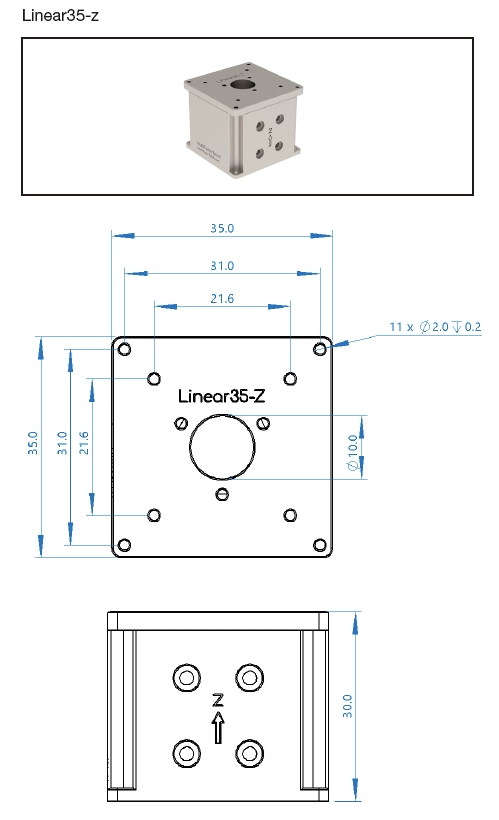 Linearxx-Z極低溫線性壓電升降臺尺寸圖: