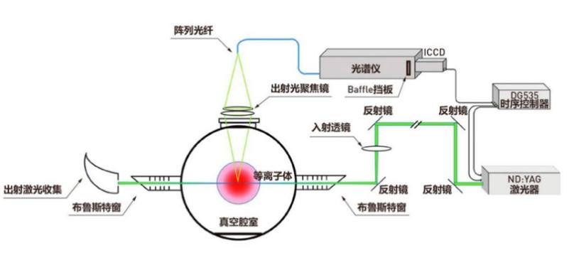 等離子體中心到透鏡的距離L和光纖的芯徑,及像斑決定了收集透鏡的焦距。舉例如下:如果像斑要求是fP =2mm,光纖芯徑400mm, 則物像比是4,如果L=320mm, 則透鏡的焦距就是320/4=80mm。同時(shí)如果觀測(cè)的等離子體范圍是50mm,那光纖一字排開的范圍就是50mm/4=12.5mm。這個(gè)寬度和連接譜儀一側(cè)的光纖束的尺寸很接近了,連接收集透鏡一側(cè)光纖也應(yīng)該是密集排布,這樣兩端容納的光纖數(shù)量就是匹配的。