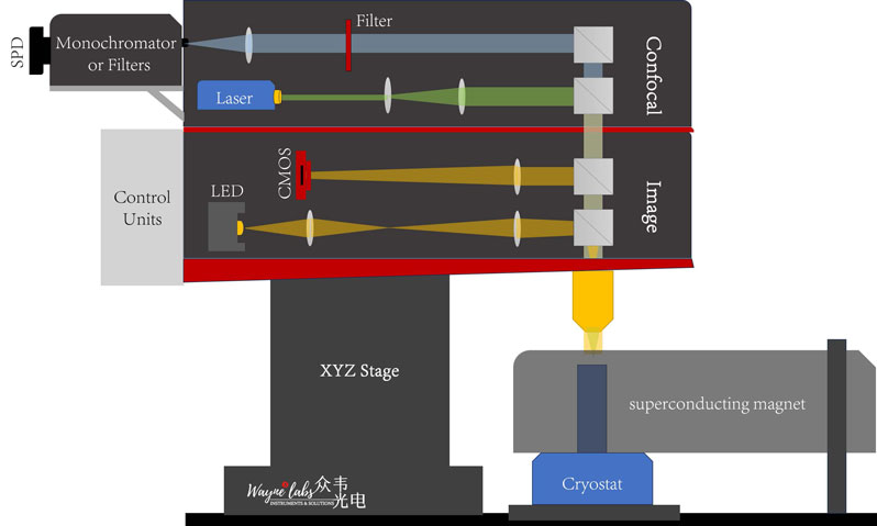 Waynelabs3 的核心研發(fā)成員具有十余年的低溫,強(qiáng)磁場(chǎng),光譜,自動(dòng)化控制與采集系統(tǒng)開(kāi)發(fā)經(jīng)驗(yàn)。我們將于2024年推出磁場(chǎng)下的微區(qū)光學(xué)測(cè)試解決方案。它支持最高達(dá)12 T磁場(chǎng),低至2.8 K環(huán)境下的微區(qū)光學(xué)測(cè)試。包括熒光,熒光壽命,反射光譜,拉曼光譜,偏振分辨二次諧波,光電流,磁光克爾與反射磁圓二色。主要應(yīng)用于磁性二維材料或磁性薄膜材料與器件的磁性表征,居里溫度表征,表面拓?fù)浯沤Y(jié)構(gòu)表征,磁疇掃描成像。