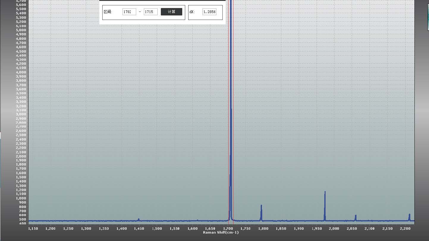 檢測條件: 在可見波段: 采用氖燈測量,10x 物鏡,1800g/mm 光柵,光柵在+1 級條件下工作, 狹縫寬度為10um。實驗時將氖燈置于顯微鏡下,測量譜線為 585 nm , 半高全寬(FWHM) ≤ 1.5cm-1