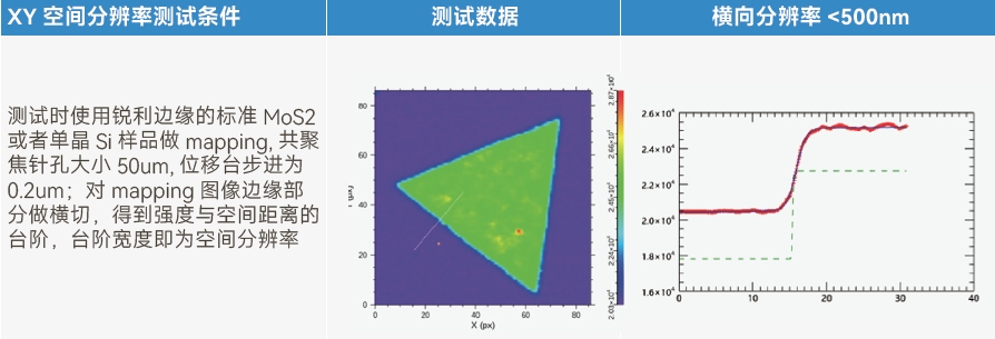 • 采用超高精度電動平臺,1μm 定位精度,可升級拉曼 Mapping 功能
