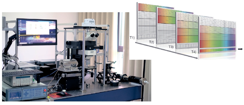 卓立漢光運用 “ 譜王”(OmniImager) 系列高光譜系統(tǒng),打造了顯微高光譜系統(tǒng),“譜王”(OmniImager) 系列采用高衍射效率的透射式光柵分光模組與高靈敏度面陣列相機、結合內置掃描成像,自動調焦及輔助攝像頭技術,可與標準C接口的成像鏡頭或正置/倒置顯微鏡直接集成,實現(xiàn)光譜影像的快速采集。