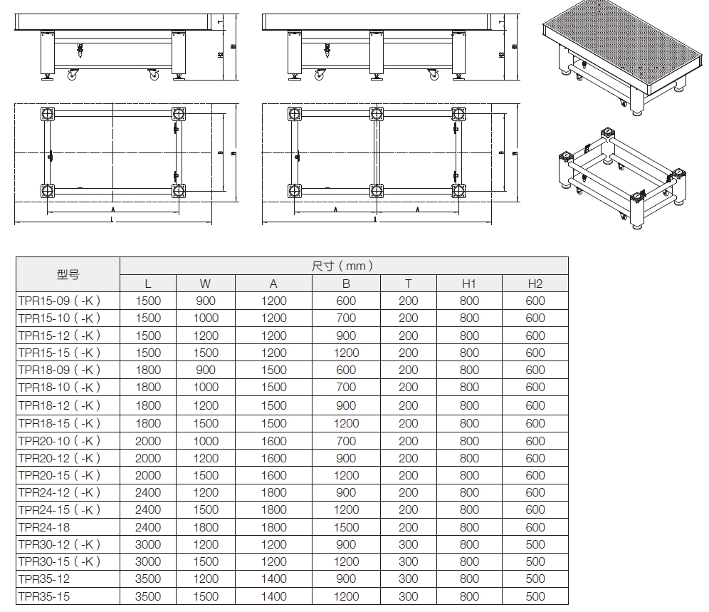 TPR系列三線擺氣浮隔振光學(xué)平臺特點: